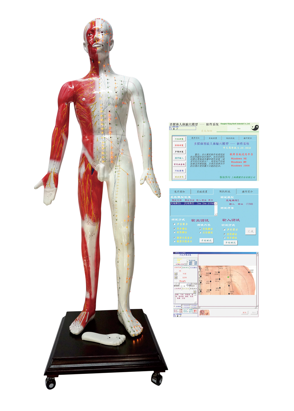 多媒體人體針灸穴位發(fā)光模型... 該系統(tǒng)融計算機技術(shù)、電子控制技術(shù)、多媒體技術(shù)、腧穴理論于一體;聲音、屏幕、人體模型同步控制筋絡(luò)腧穴的信息;顯示十二經(jīng)脈循環(huán)流注,經(jīng)脈絡(luò)屬表理對經(jīng)關(guān)系,特定穴的分布;加之屏幕表層、淺層、深層穴位解剖圖的配合,常見病的辯施治,隨證選穴的查詢及處理輸出,使學員對人體經(jīng)絡(luò)腧穴信息有更全方位的了解,更有利于加深印象與理解掌握;同時,亦可用于臨床與科研參考。